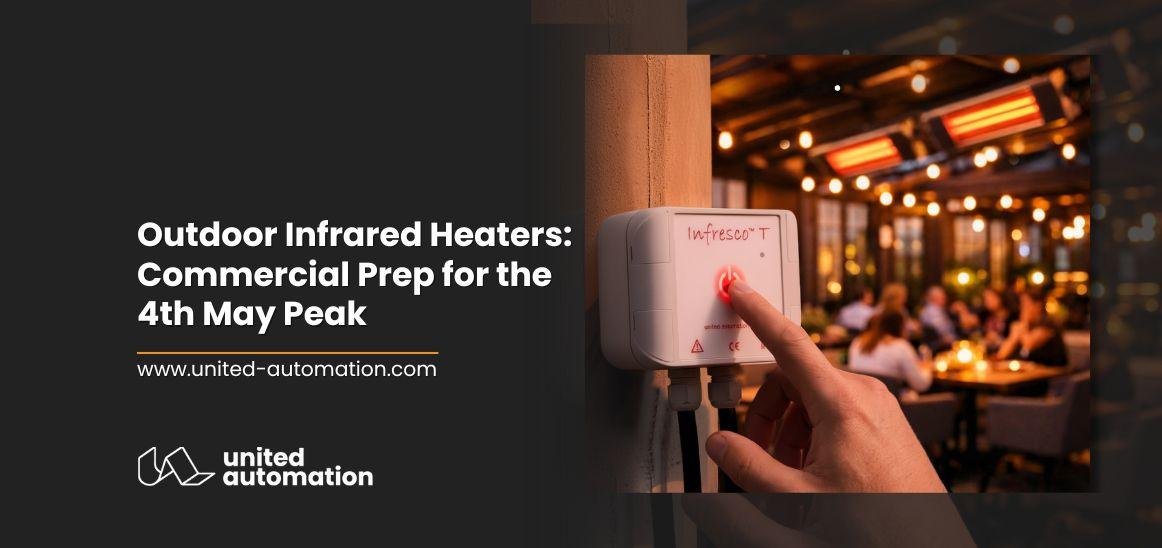 As the UK hospitality industry prepares for the 4th May Bank Holiday, commercial venues are bracing for a massive surge in outdoor footfall. With search interest in outdoor infrared heaters predicted to spike by 290% this week, facility managers must transition from basic heating to high-capacity, industrial-grade thermal management. United Automation provides the robust control technology required to maintain guest comfort while protecting the bottom line in high-demand commercial environments.